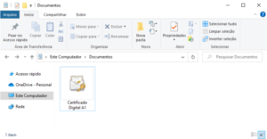 1º Passo: Encontre o certificado digital em seu computador e clique duas vezes com o botão esquerdo do mouse sobre ele para executar a instalação.
